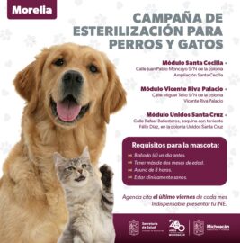 Morelia, Michoacán, 18 de Septiembre de 2024.- Si vives en Morelia y deseas esterilizar a tus mascotas, la Secretaría de Salud de Michoacán (SSM) cuenta con tres módulos de esterilización canina y felina donde la atención es gratuita todo el año. Estos módulos están ubicados en los centros...