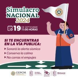 Morelia, Michoacán, 10 de Septiembre de 2024.- A fin de promover la cultura de la autoprotección, la Secretaría de Gobierno a través de la Coordinación Estatal de Protección Civil, invitan a participar en el Simulacro de Sismo Nacional 2024. En rueda de prensa, el coordinador estatal de Protección...