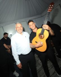 Morelia, Michoacán a 14 de Mayo de 2024. Alejandro Sanz recibió por parte del gobernador Alfredo Ramírez Bedolla, una guitarra de Paracho elaborada por el laudero Abel García López, tras el concierto que ofreció el pasado 10 de mayo en el Estadio Morelos, como parte del Festival Michoacán...