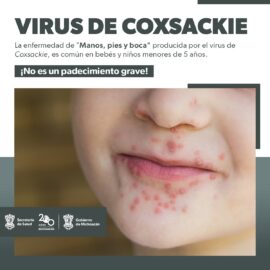 Morelia, Michoacán, 22 de Marzo de 2024.- La Secretaría de Salud de Michoacán (SSM) exhorta a la población a identificar a tiempo y a prevenir la enfermedad de manos, pies y boca, padecimiento producido por el virus coxsackie, que si bien, no es grave y en la entidad...