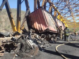 Morelia, Michoacán, 6 de marzo de 2024.- La Secretaría de Gobierno, a través de la Coordinación Estatal de Protección Civil (CEPC), acelera los trabajos de inspección y limpieza del puente en la autopista Siglo XXI donde ayer martes se registró un incendio ocasionado por un accidente vehicular. Elementos...