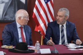 Morelia, Michoacán, 26 de febrero de 2024.- No se le debe dar la oportunidad de vender aguacate a Estados Unidos procedente de huertas ilegales, señaló el embajador de Estados Unidos en México Ken Salazar, tras la reunión con gobernador Alfredo Ramírez Bedolla en la que analizó el funcionamiento...