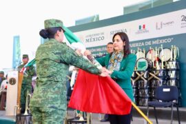 Uruapan, Michoacán, 20 de febrero de 2024.- Ante cientos de estudiantes y docentes, hoy la Secretaría de Educación del Estado (SEE) entregó más de 40 bandas de guerra y banderas nacionales para centros escolares de Uruapan, con lo que continúa el histórico equipamiento a escuelas de Michoacán. La...