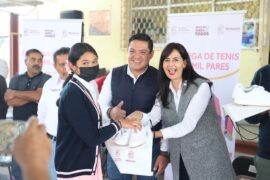 Nuevo Parangaricutiro, Michoacán a 08 de Febrero de 2024. La secretaria de Educación, Gabriela Molina Aguilar, encabezó la entrega de calzado escolar deportivo en la comunidad de San Juan Nuevo en Nuevo Parangaricutiro, donde se benefició con Jalo a Estudiar a 2 mil alumnas y alumnos de secundaria,...