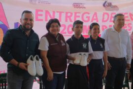 Morelia, Michoacán, 02 de febrero de 2024.- En seguimiento al programa Jalo a Estudiar, autoridades de la Secretaría de Educación del Estado (SEE) entregaron más de 2 mil 200 pares de tenis en los municipios de La Huacana y Churumuco, a jóvenes de nivel secundaria, con la intención...