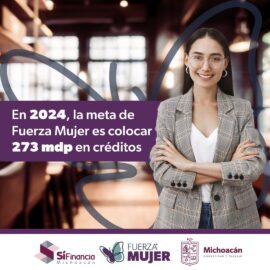 Morelia, Michoacán, 24 de Enero de 2024.- La directora general del Sistema Integral de Financiamiento para el Desarrollo de Michoacán (Sí Financia), Areli Gallegos Ibarra, anunció que para este año se proyecta colocar 273 millones de pesos en créditos, a través del programa Fuerza Mujer, diseñado específicamente para...
