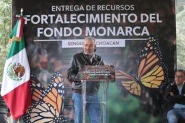 Senguio, Michoacán, 7 de enero de 2024.- El gobernador Alfredo Ramírez Bedolla entregó un millón de dólares para el Fondo de la Mariposa Monarca, el cual se destina para el pago de servicios ambientales, así como para dueños y poseedores del bosque, ejidatarios y para los pequeños propietarios...