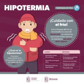 Morelia, Michoacán, a 28 de Diciembre del 2023. La Secretaría de Salud de Michoacán (SSM) exhorta a la población a detectar a tiempo los signos de alarma de la hipotermia, y evitar así defunciones por esta causa, sobre todo en los menores de 6 años, adultos mayores y...