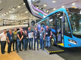 Guadalajara, Jalisco a 16 de Noviembre de 2023.- Como parte del Programa de Mejoramiento del Transporte Público Terrestre en Uruapan, la Secretaría de Desarrollo Urbano y Movilidad (Sedum) organizó un recorrido por la Expo Transporte 2023, que se desarrolla del 15 al 17 de noviembre en Guadalajara, Jalisco,...