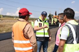 Tlalpujahua, Michoacán, 9 de noviembre de 2023.- Michoacán construye dos obras carreteras multianuales en la región oriente del estado, con una inversión de 283 millones de pesos para atender 70 kilómetros de vía y mantenerlos en óptimas condiciones de funcionamiento hasta 2027 para beneficio de 83 mil habitantes...