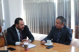 Morelia, Michoacán a 07 de Noviembre de 2023. Tras entregar el nombramiento oficial al nuevo titular de Pensiones Civiles, Pedro Gustavo Valenzuela Cantellano, el secretario de Finanzas y Administración, Luis Navarro, anunció que el Gobierno de Michoacán tiene interés de fortalecer la capacidad de la institución a favor...