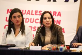 Morelia, Michoacán a 06 de Noviembre de 2023.- La titular de la Secretaría de Educación del Estado (SEE), Gabriela Molina Aguilar, presentó los manuales para una educación con perspectiva de género en preescolar, primaria y secundaria, dando con ello un paso sin precedentes para el fomento de la...
