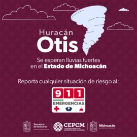 Morelia, Michoacán a 24 de Octubre de 2023.- Ante el arribo del huracán Otis, la Secretaría de Gobierno, a través de la Coordinación Estatal de Protección Civil, informa que se encuentran habilitados albergues temporales y extiende la alerta a los 113 municipios. El meteoro categoría 5 podría intensificarse...