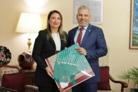 Morelia, Michoacán a 24 de Octubre de 2023. El gobernador Alfredo Ramírez Bedolla, y la jefa de la Brigada Investigadora de Trata de Personas de la Policía de Investigaciones de Chile, Katherine Alejandra Vázquez, compartieron experiencias de programas y acciones para mejorar la seguridad y prevención de la...