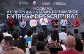 Los Reyes, Michoacán, 28 de Febrero de 2025.- Para dar certeza jurídica y patrimonial a 109 familias de Los Reyes, el gobernador Alfredo Ramírez Bedolla encabezó la entrega de escrituras, como parte del Programa Atención a Asentamientos Humanos. El mandatario ratificó su compromiso con este municipio al destacar...