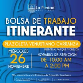 La Piedad, Michoacàn a 24 de Noviembre del 2015.- Autoridades municipales de La Piedad, por medio de la Dirección de Promoción Económica, invitan a la tercera edición de la Bolsa de trabajo itinerante, en la que se estarán dando a conocer variedad de ofertas laborales para quien de...