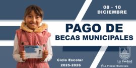 La Piedad, Michoacàn a 5 de Diciembre del 2025.- El Gobierno Municipal a través de la dirección de Educación, informa que a partir del próximo lunes 08 y hasta el miércoles 10 se realizará la entrega del apoyo económico que se hace por medio de las Becas Municipales...