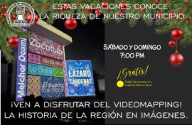 Cd. Lázaro Cárdenas, Michoacán a 27 de Diciembre de 2025.- El Museo Comunitario de Arqueología e Historia (MUCAH) mantiene abierta sus puertas en estas vacaciones decembrinas, e invita a las familias a disfrutar este sábado y domingo de una experiencia visual única: la proyección del video mapping nocturno,...