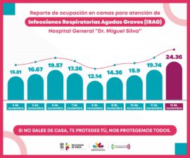 Morelia, Michoacán, a 13 de Noviembre de 2020.- Después de mantener una ocupación por debajo del 20 por ciento desde el 4 de noviembre, este jueves las camas reconvertidas para la atención de Infecciones Respiratorias Agudas Graves (IRAG), en el Hospital General «Dr. Miguel Silva» registraron un incremento...