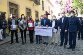 Morelia, Michoacán a 12 de noviembre de 2020.- En aras de avanzar en la consolidación de los derechos económicos de la mujer, fomentar la recuperación de los pequeños y medianos establecimientos y reactivar el flujo comercial a nivel local, el presidente municipal de Morelia, Raúl Morón Orozco, encabezó...