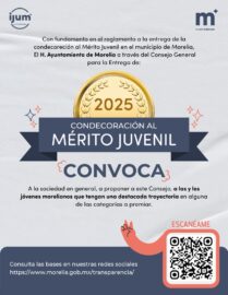 Morelia Michoacán; 07 de Abril de 2025.- La administración del presidente municipal de Morelia, Alfonso Martínez Alcázar, invita a las y los jóvenes a participar en la “Condecoración al Mérito Juvenil 2025”, que tiene el fin de reconocer las importantes aportaciones de este sector poblacional y seguir fomentando...