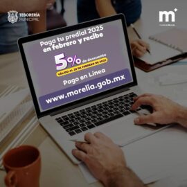 Morelia, Michoacán; 26 de febrero de 2025.- No te quedes sin aprovechar el 5 por ciento de descuento en el predial en Morelia, el cual estará vigente hasta el próximo viernes 28 de febrero del presente, tanto en módulos físicos como en línea: www.morelia.gob.mx. Una de las estrategias...