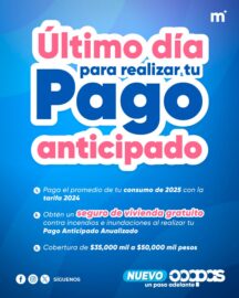 Morelia, Michoacán, 27 de Febrero de 2025.- El Organismo Operador de Agua Potable, Alcantarillado y Saneamiento de Morelia (OOAPAS), informa que el próximo 28 de febrero concluye el Programa de Pago Anticipado, por lo que se invita a las y los morelianos a aprovechar el último día y...