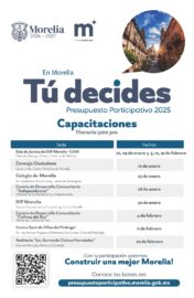 Morelia, Michoacán; 23 de Enero de 2025.- Siguiendo las instrucciones del Presidente Municipal de Morelia, Alfonso Martínez Alcázar, arrancaron con éxito las capacitaciones ciudadanas para el Presupuesto Participativo 2025, las cuales se están llevando a cabo principalmente en el Centro Administrativo Morelia (CAM), ubicado en Eduardo Ruiz #570...