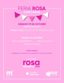 Morelia, Michoacán; 15 de Octubre de 2024. – El DIF Morelia, que encabeza la Presidenta Honoraria, Paola Delgadillo Hernández, invita a las familias morelianas a participar en la Feria Rosa con causa, que se llevará a cabo el sábado 19 de octubre a partir de las 10:00 a.m....