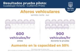 Morelia, Michoacán, a 09 de enero de 2022.- La dinámica actual en Morelia requiere vialidades funcionales que permitan un flujo ágil de automóviles, por ello, se determinó modificar el sentido de la calle Guillermo Prieto y la avenida Guadalupe Victoria, en razón de los resultados que arrojó el...