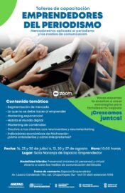 Morelia, Michoacán, a 13 de julio de 2021.- El Gobierno de Michoacán a través de la Secretaría de Desarrollo Económico (Sedeco) y la Coordinación General de Comunicación Social, llevarán a cabo una serie de talleres denominados “Emprendedores del Periodismo”, encaminados a brindar alternativas de fortalecimiento empresarial a medios...
