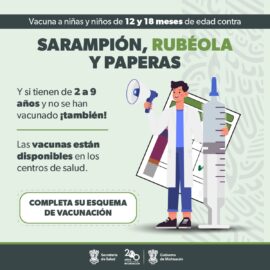 Morelia, Michoacán, 10 de abril de 2024.- La Secretaría de Salud de Michoacán (SSM) invita a madres y padres de familia a llevar a vacunar a sus hijas e hijos contra el sarampión, pues la Campaña para la Recuperación de Coberturas permanecerá durante todo el mes de abril...