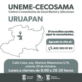 Morelia, Michoacán a 04 de Abril de 2024. La Secretaría de Salud de Michoacán (SSM) ofrece atención gratuita a la población con problemas emocionales, crisis de ansiedad, depresión y dependencia al alcohol o tabaco a través de cinco Centros Comunitarios de Salud Mental y Adicciones (Cecosamas) ubicados...