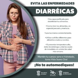 Morelia, Michoacán, 5 de Abril de 2024.- Para prevenir enfermedades diarreicas en esta temporada de calor, la Secretaría de salud de Michoacán (SSM) invita a la población lavar y desinfectar las frutas y verduras antes de consumirlas, cocer adecuadamente los alimentos y lavarse las manos antes y después...