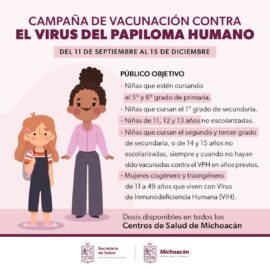 Morelia, Michoacán a 21 de Octubre de 2023. un mes del inicio del arranque de la campaña de Vacunación contra el Virus del Papiloma Humano (VPH), la Secretaría de Salud de Michoacán (SSM), ha logrado aplicar 15 mil 100 dosis. Este biológico se aplica en todas las...