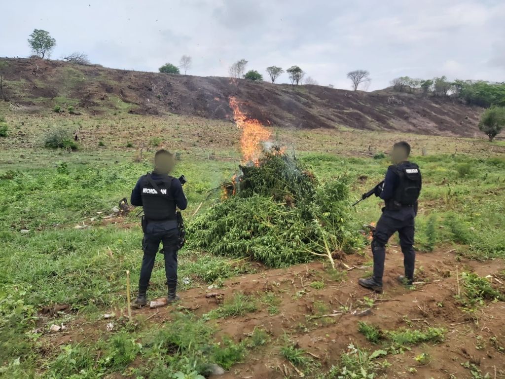 Tiquicheo, Michoacán, a 18 de de junio de 2021.- Derivado de una acción operativa realizada por elementos de la Secretaría de Seguridad Pública (SSP), se logró la ubicación y destrucción de más de 6 mil plantas de hierba color verde con las características propias de la marihuana.