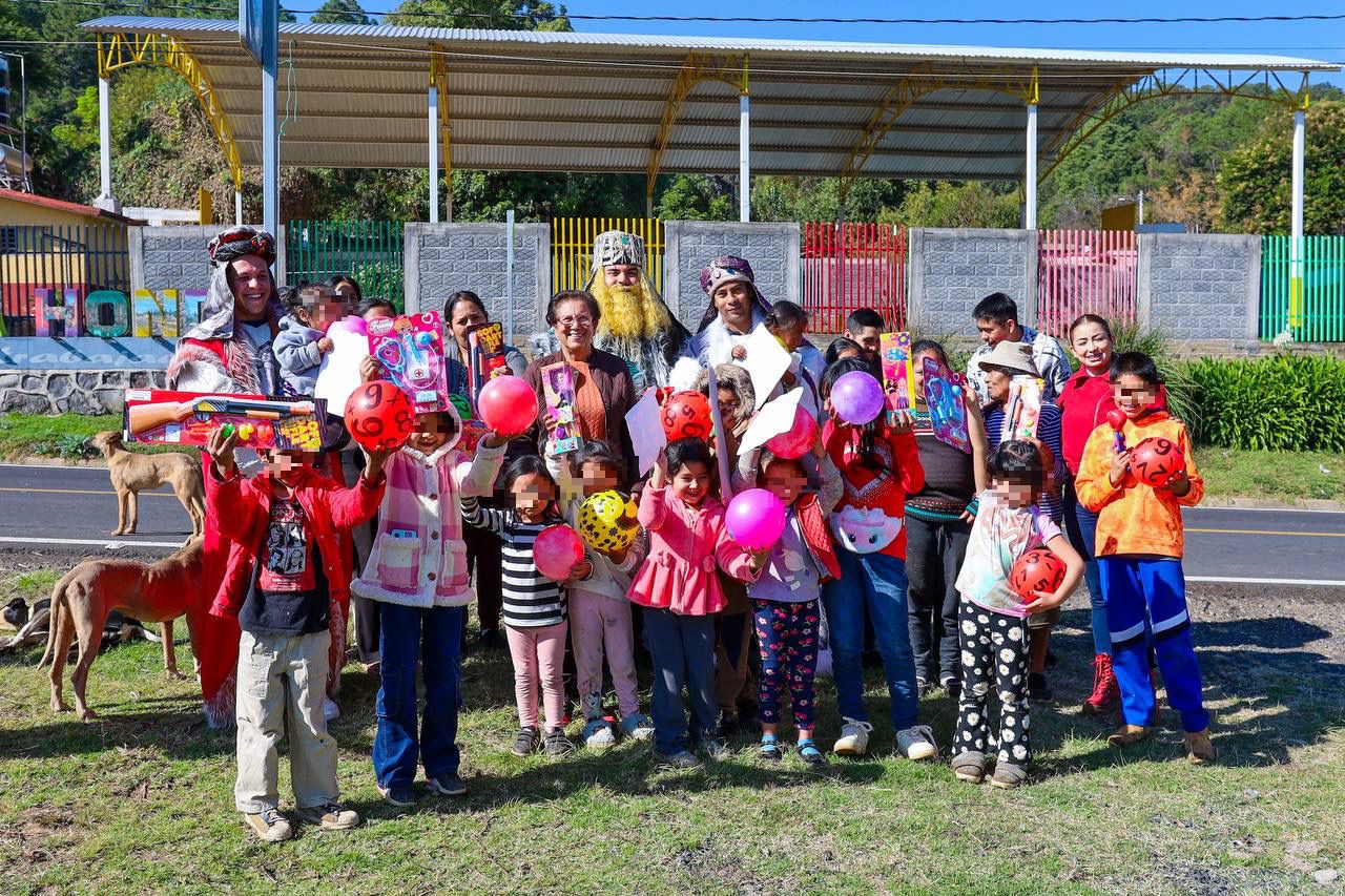 Durante esta jornada, en la comunidad de El Coyolote se entregaron cobijas a las familias, refrendando el compromiso de acompañarlas con calidez y atención, especialmente en esta temporada. Además, niñas y niños de las distintas comunidades vivieron momentos de alegría e ilusión con la visita de los Reyes Magos, quienes llevaron sonrisas y esperanza a cada rincón.