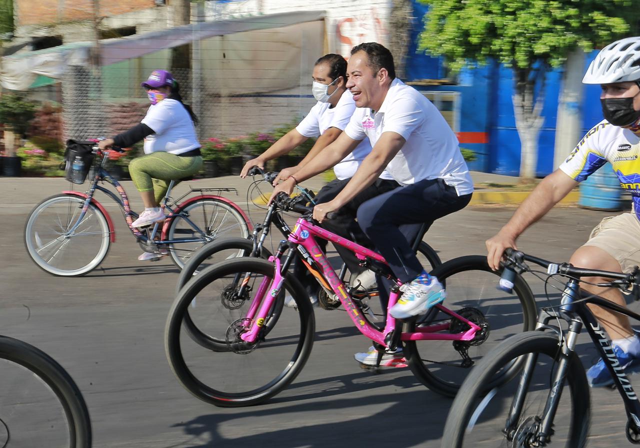 Reunidos en la Plaza Lázaro Cárdenas del municipio de Puruándiro, bajo estrictos protocolos sanitarios, Carlos Herrera realizó una rodada ciclista con miembros del Club de Ciclismo Competitivo y del Grupo Reto Monarca.