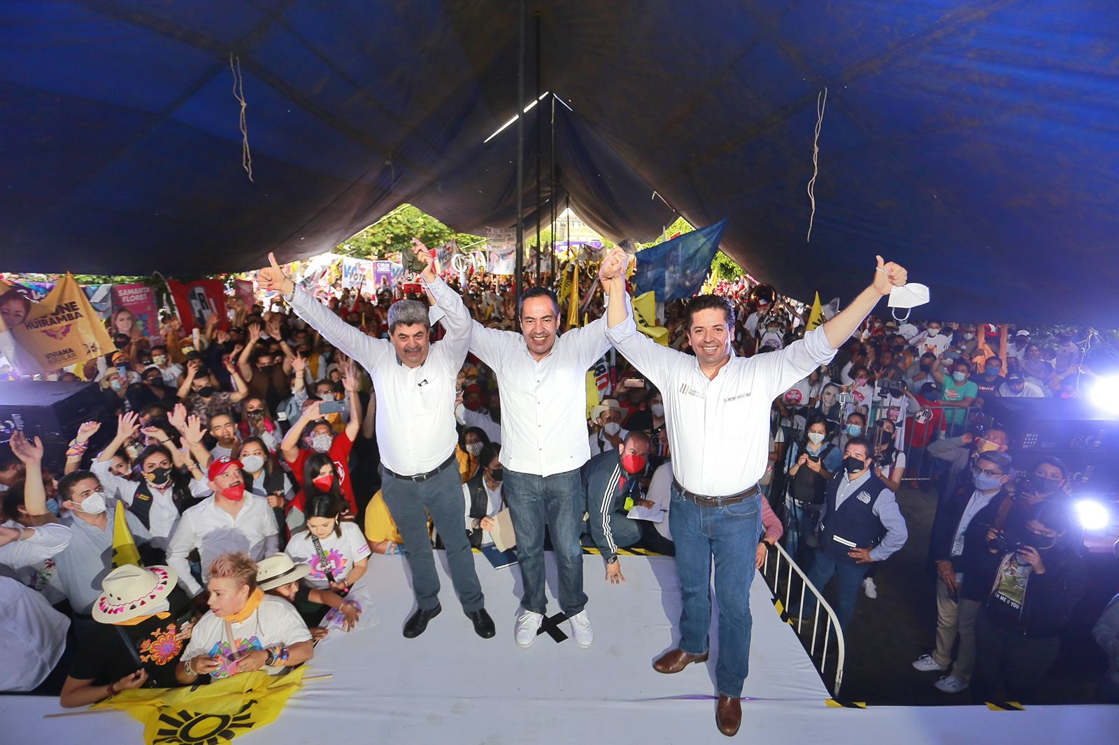 “Huele a triunfo y en Pátzcuaro vamos ganar”, proclamó el candidato del Equipo por Michoacán, al ser recibido entre miles de ciudadanos y militantes del PRI, de PAN y del PRD.