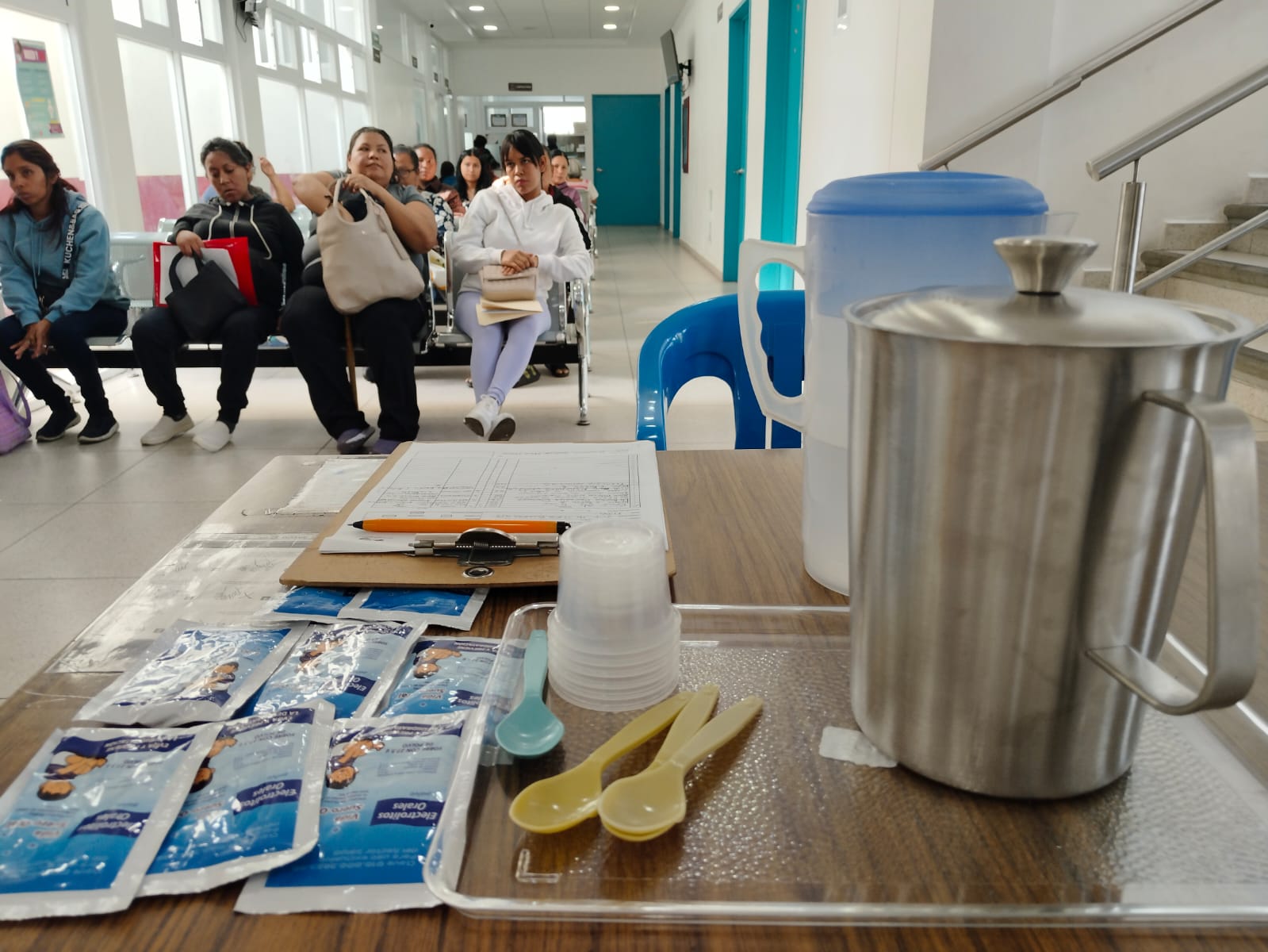 El personal del consultorio orienta a los pacientes de las salas de espera sobre la importancia que tiene hidratarse de manera diaria con dos litros de agua en los adultos y un litro y medio en caso de los menores de edad.