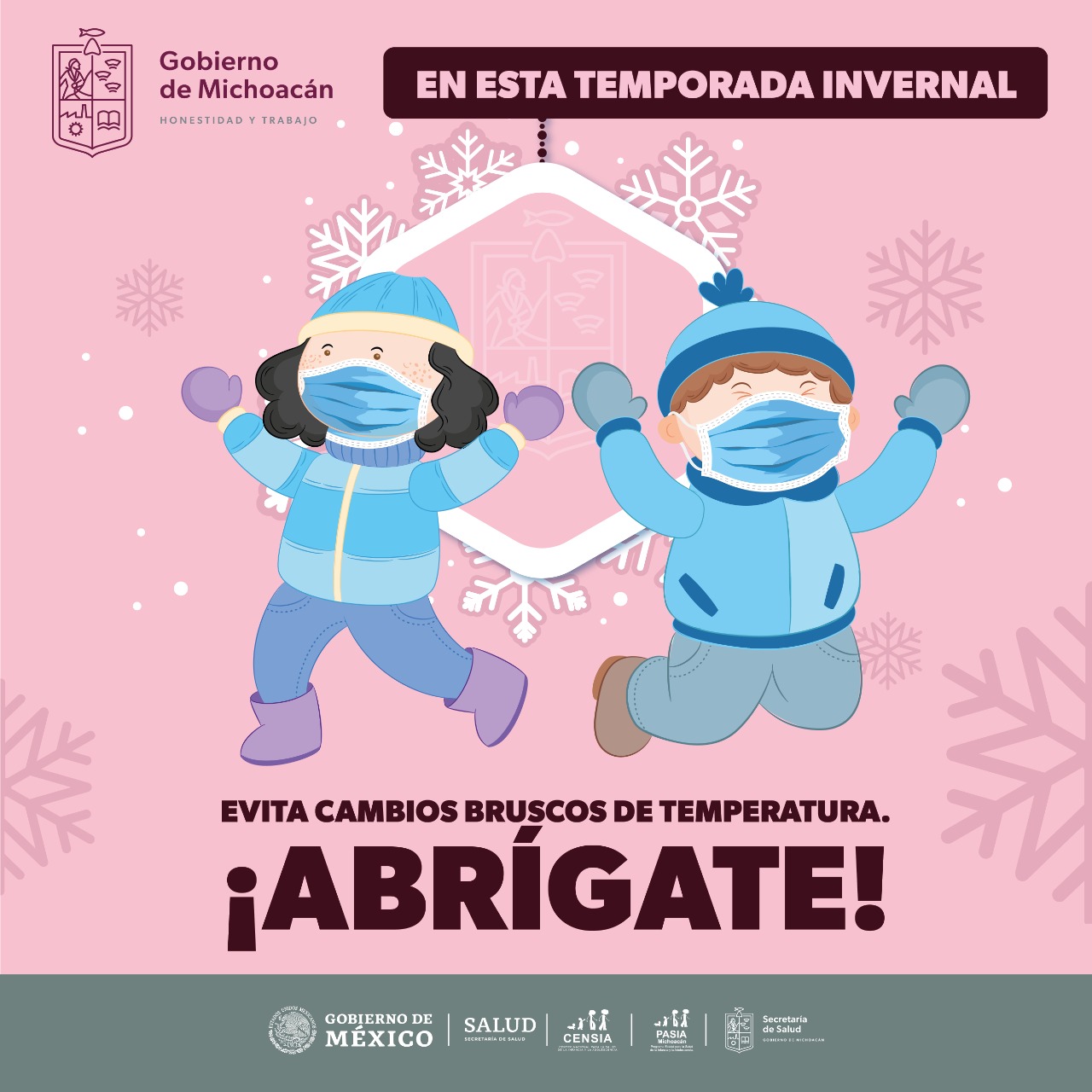 Morelia, Michoacán, a 14 de Noviembre de 2021.- Ante el descenso de las temperaturas por la temporada invernal que se registran actualmente en la entidad, la Secretaría de Salud de Michoacán (SSM), recomienda a la población extremar precauciones y establecer medidas preventivas para el cuidado de su salud.