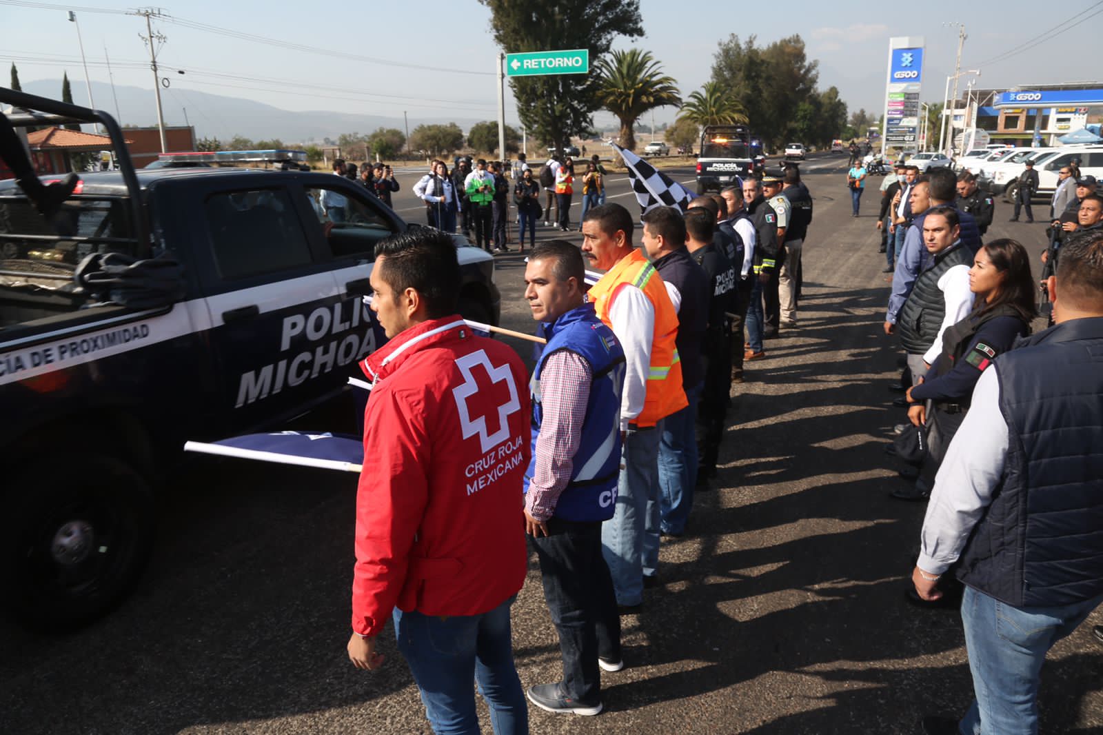 Morelia, Michoacán, 8 de abril del 2022.- La Secretaría de Seguridad Pública en coordinación con la Guardia Nacional (GN), la Fiscalía General del Estado (FGE), la Policía Municipal, la Cruz Roja y Protección Civil, dio el banderazo de arranque del Operativo de Prevención y Vigilancia para Semana Santa.