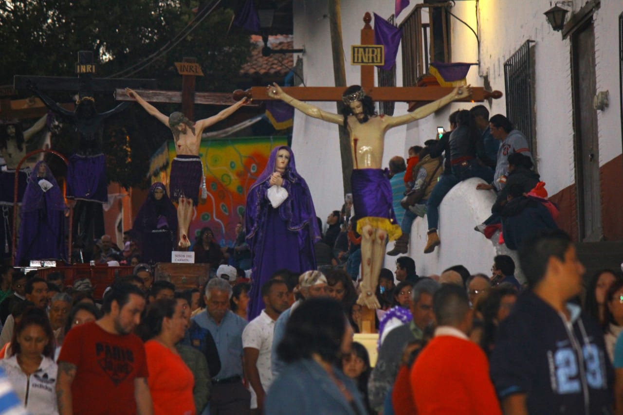 De acuerdo con el Ayuntamiento, al caer la tarde de este miércoles 13, el sonido de las campanas marcará el momento de inicio para la salida de 32 imágenes de Cristos con sus “Dolorosas”, que recorrerán las calles del Pueblo Mágico acompañados por una columna de fieles devotos.