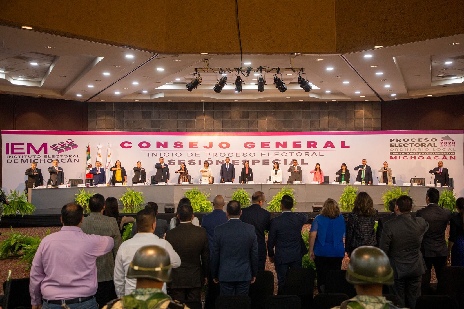 Ante representantes de los tres poderes, partidos políticos, Instituciones autónomas y sociedad civil, el Mtro. Ignacio Hurtado Gómez, Consejero Presidente del IEM, realizó la declaratoria formal de inicio del PEL 2023-2024 en la que exhortó a la ciudadanía a apoderarse del proceso electoral, y desde su trinchera, de forma libre, hacer suyo su derecho a votar de manera libre y secreta, ya que no hay democracia sin ciudadanía.