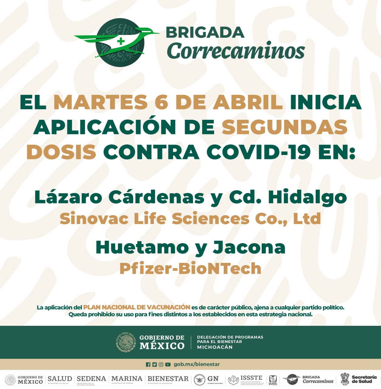 Cabe destacar que el Gobierno de México envió el pasado 09 de marzo a Lázaro Cárdenas y Ciudad Hidalgo, vacunas Sinovac Life Sciences Co., Ltd, cuya farmacéutica recomienda aplicar la segunda dosis entre 28 a 35 días después de la primera.