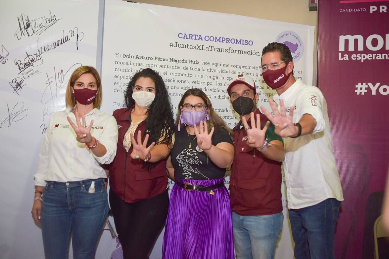 «Yo Iván Arturo Pérez Negrón Ruíz, me comprometo ante ustedes mujeres morelianas, representantes de toda la diversidad de mujeres que radican en nuestro municipio, que en los espacios de toma de decisiones, en los que tenga la oportunidad de desempeñarme, velaré por los derechos humanos de las mujeres, en especial el del acceso a una vida libre de violencia, así mismo daré puntual seguimiento a las Propuestas Púrpura que hoy tengo en mis manos», dijo antes de plasmar su firma en la carta señalada.