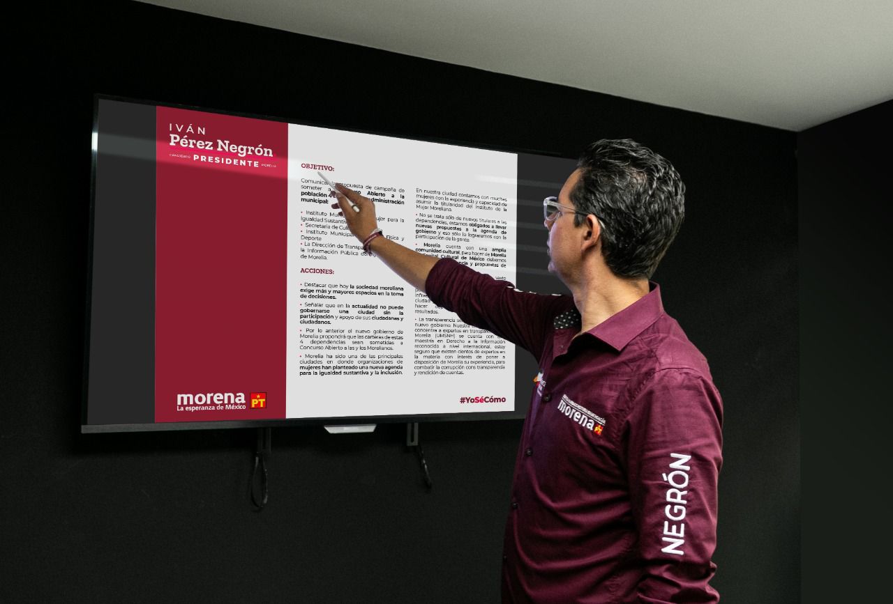 En diversas entrevistas concedidas a medios de comunicación Pérez Negrón destacó que hoy la sociedad Moreliana exige más y mayores espacios en la toma de decisiones por lo que cinco dependencias de la administración municipal serán encabezadas por mujeres con claro perfil ciudadano elegidas mediante convocatorias públicas abiertas a la sociedad: “La inclusión de mujeres y perfiles ciudadanos en la administración es una demanda social y una necesidad para llevar al gobierno municipal innovación, compromiso e inclusión” señaló el candidato.