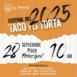 La Piedad, Michoacàn a 24 de Septiembre del 2024.- Este domingo 28 de septiembre a partir de las 10 de la mañana, se llevará a cabo en la Plaza Principal de La Piedad, el Festival del Taco y la Torta, donde las familias de la localidad podrán disfrutar...