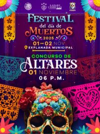Cd. Lázaro Cárdenas, Michoacàn a 21 de octubre de 2025.– El Gobierno Municipal de Lázaro Cárdenas invita a participar en el Concurso de Altares que se llevará a cabo el próximo 1 de noviembre a las 6:00 de la tarde, como parte del Festival del Día de Muertos...