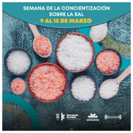 Morelia, Michoacán, a 10 de marzo de 2021.- Con el lema “Más sabor menos sal”, la Secretaría de Salud de Michoacán (SSM), se suma a la semana de sensibilización y concientización sobre el uso y consumo de sal, que se desarrolla del 9 al 15 de marzo del...